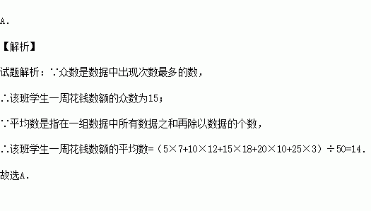 根据这个统计表可知,该班学生一周花钱数额的众数、平均数是( )