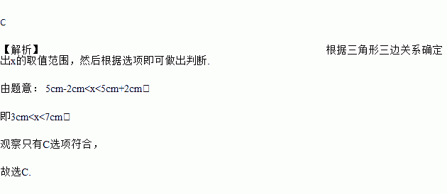 A. 2cm B. 3cm C. 5cm D. 7cm