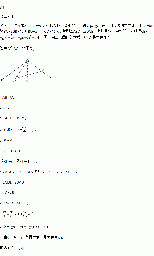 如图,在中,,点是边上一动点(不与、重合),,交于点,且,则线段的最大值为________.