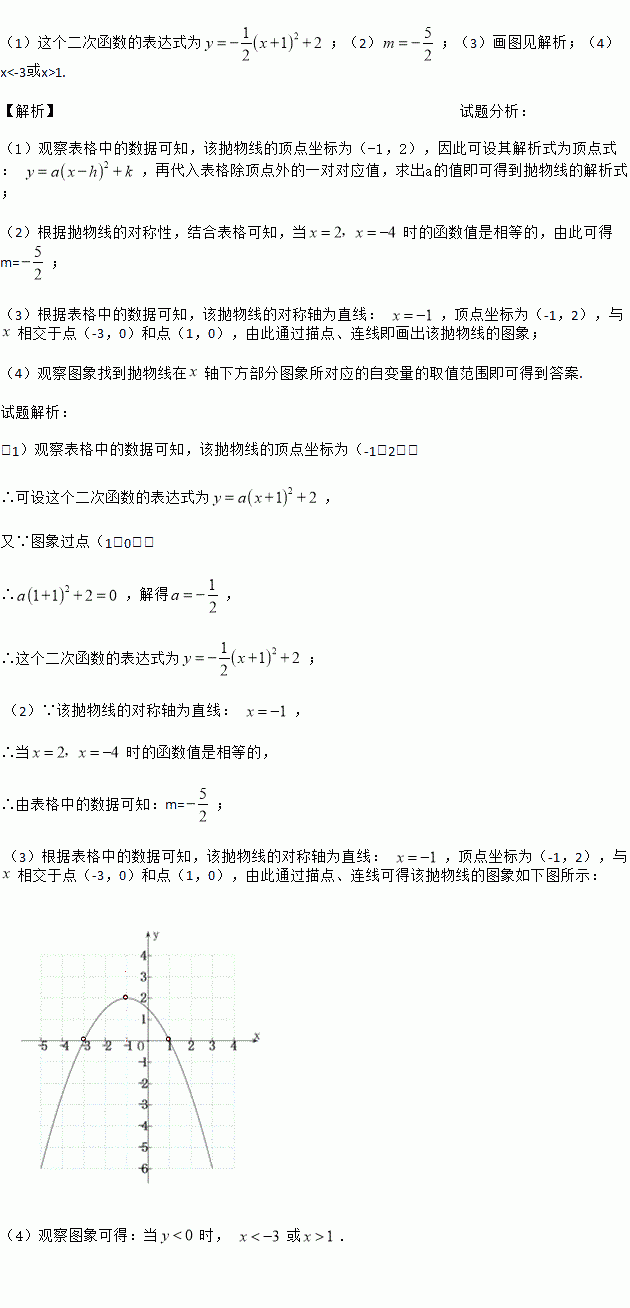 一个二次函数图象上部分点的横坐标x,纵坐标y的对应值如下表: