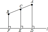 分析:此题分情况考虑:①A、B在直线l的同侧,先利用梯形定义,证出四边形ABFD是梯形,再利用平行线分线段成比例定理证出AC:BC=DE:EF,而C是AB中点,那么AC:BC=1:1,所以DE:EF=1:1,所以E是DF中点,从而CE是梯形ABFD的中位线,利用梯形中位线定理可求出CE的长;