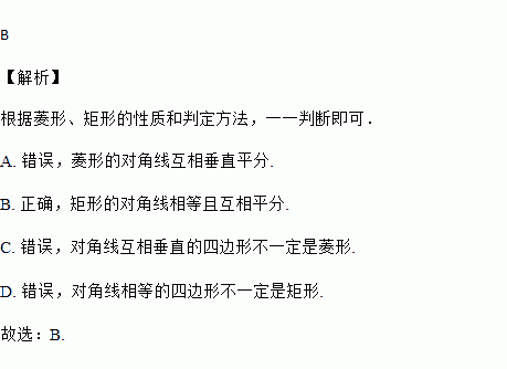 A. 菱形的对角线相等且互相平分 B. 矩形的对角线相等且互相平分