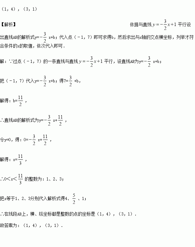平行.则在线段AB上,横、纵坐标都是整数的点的坐标是__.