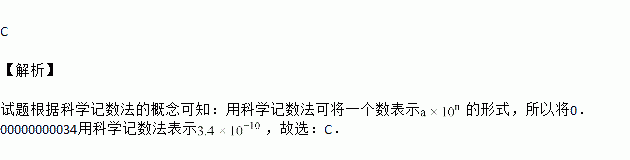 石墨烯是现在世界上最薄的纳米材料,其理论厚度仅是0.00000000034m,这个数用科学记数法表示正确的是( )