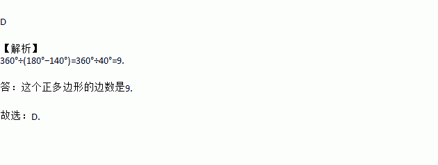 已知一个正多边形的内角是140°,则这个正多边形的边数是( )