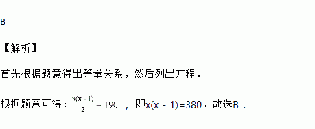 A. x(x-1)=190 B. x(x-1)=380 C. x(x-1)=95 D. (x-1)2=380
