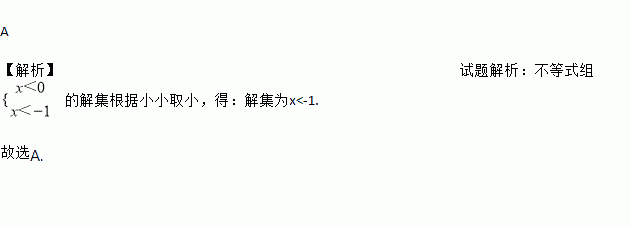 A. x<-1 B. x<0 C. -1<x<0 D. 无解