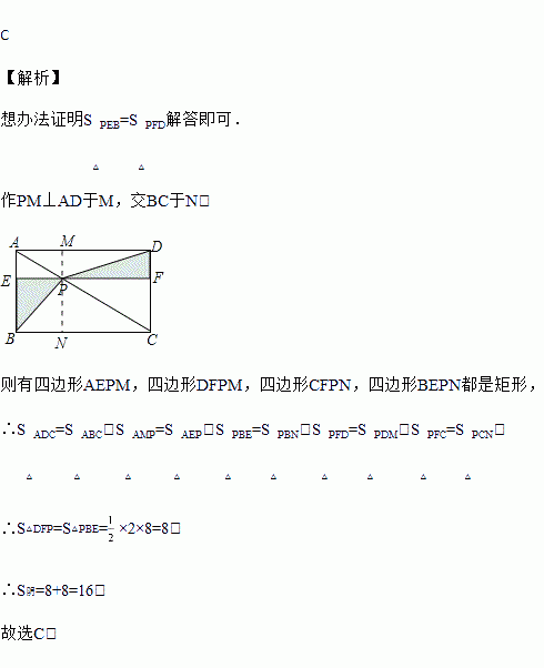 如图,点 P 是矩形 ABCD 的对角线 AC 上一点,过点 P 作 EF//BC,分别交 AB,CD 于 E、F,连接 PB、PD.若 AE=2,PF=8.则图中阴影部分的面积为( )
