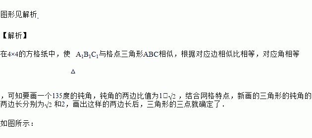 如图,在大小为的正方形方格中,的顶点、、在单位正方形的顶点上,请在图中画一个,使(相似比不为),且点、、都在单位正方形的顶点上.________.