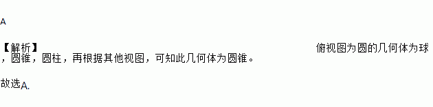 A 【解析】俯视图为圆的几何体为球,圆锥,圆柱,再根据其他视图,可知此几何体为圆锥。 故选A.