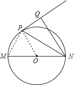 分析 (1)连接OP,PM,由角平分线的定义得到∠QNP=∠PNM,由等腰三角形的性质得到∠OPN=∠ONP,等量代换得到∠OPN=∠QNP,根据平行线的判定定理得到OP∥NQ,根据平行线的性质得到OP⊥PQ,即可得到结论;