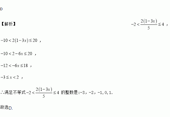 满足不等式的整数是 ( )