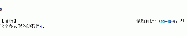 若一个多边形的每一个外角都等于40°,则这个多边形的边数是 .