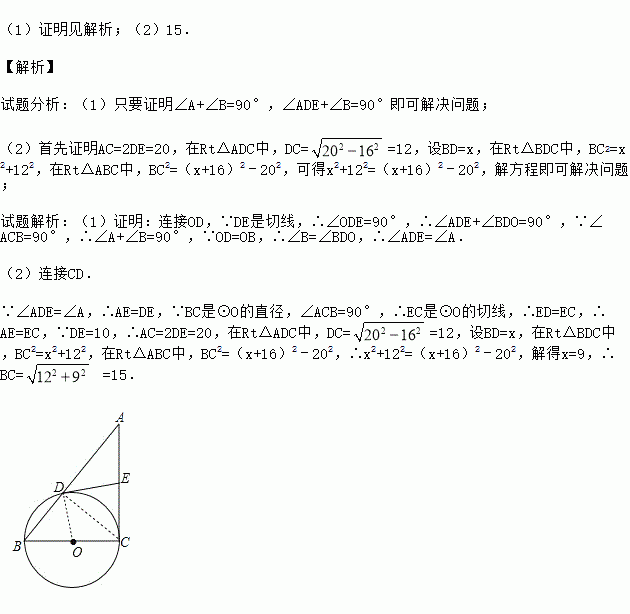 如图,在Rt△ABC中,∠C=Rt∠,以BC为直径的⊙O交AB于点D,切线DE交AC于点E.