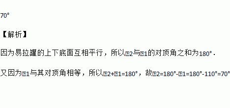用吸管吸易拉罐内的饮料时,如图,∠1=110°,则∠2=_____.(易拉罐的上下底面互相平行)