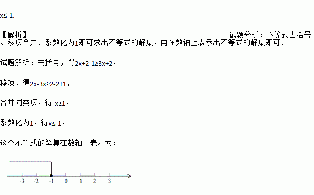 解不等式2(x+1)-1≥3x+2,并把它的解集在数轴上表示出来.
