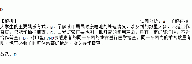 C. 日光灯管厂要检测一批灯管的使用寿命