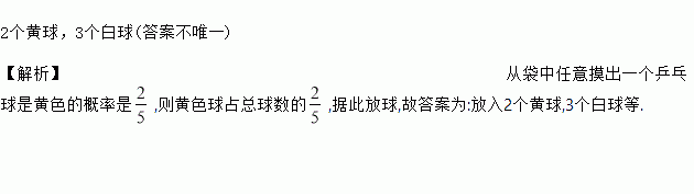 要在一只不透明的袋中放入若干个只有颜色不同的乒乓球,搅匀后,使得从袋中任意摸出一个乒乓球是黄色的概率是 ,可以怎样放球______(只写一种).