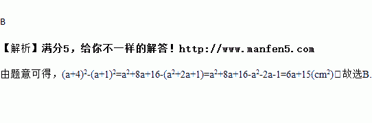 如图,从边长为(a+4) cm的正方形纸片中剪去一个边长为(a+1) cm的正方形(a>0),剩余部分沿虚线又剪拼成一个长方形(不重叠无缝隙),则长方形的面积为