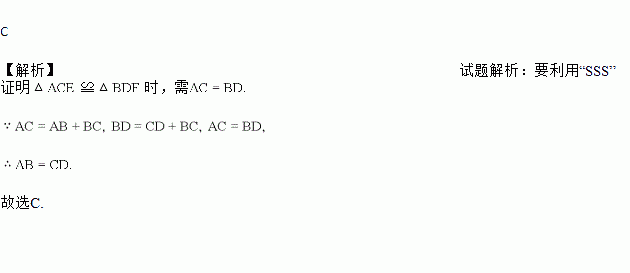 如图,在△ACE和△BDF中,AE=BF,CE=DF,要利用“SSS”证△ACE≌△BDF时,需添加一个条件是( )