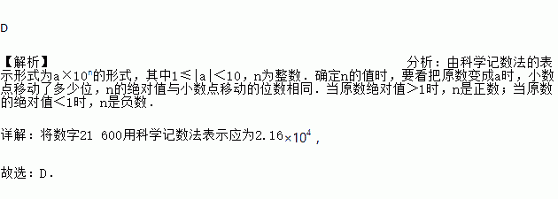 将数字21 600用科学记数法表示应为( )