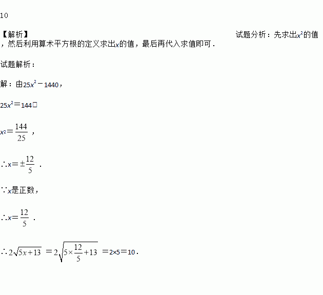 已知25x2-144=0,且x是正数,求2的值.