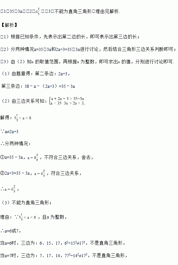 三角形的周长为38,第一条边长为a,第二条边比第一条边的2倍多3.