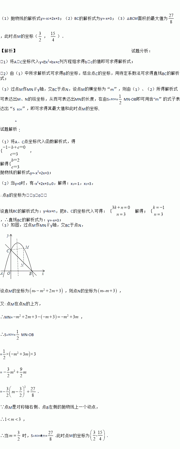 (3)点M是对称轴右侧点B左侧的抛物线上一个动点,当点M运动到什么位置时,△BCM的面积最大?求△BCM面积的最大值及此时点M的坐标.