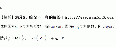 若a、b互为相反数,x、y互为倒数,则的值是( )