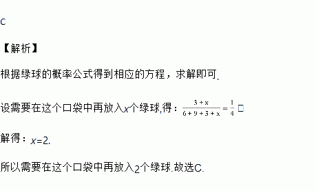 一个不透明的口袋中装有红球6个,黄球9个,绿球3个,这些球除颜色外没有其他任何区别.现从中任意摸出一个球.如果要使摸到绿球的概率为