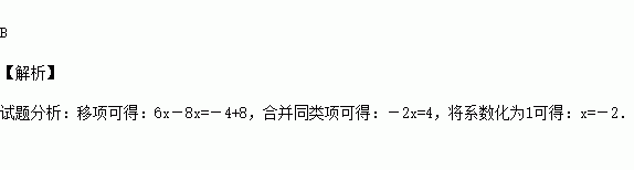 方程6x﹣8=8x﹣4的解是( )