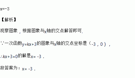 一次函数y=kx+3的图象如图所示,则方程kx+3=0的解为__________.