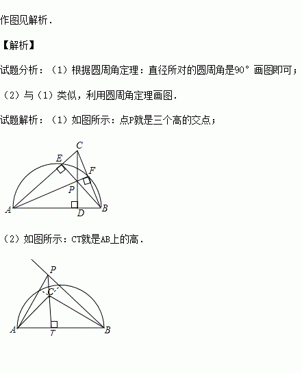 如图AB是半圆的直径,图①中,点C在半圆外;图②中,点C在半圆内,请仅用无刻度的直尺按要求画图.
