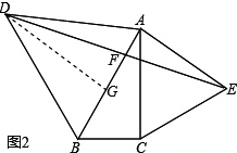 (2)如图,作DG∥AE,由(1)得,∠FAE=90°,所以,∠DGF=90°,易证△DGB≌△ACB,得DG=AC,所以,DG=AE,所以,△DGF≌△EAF,所以,DF=EF;