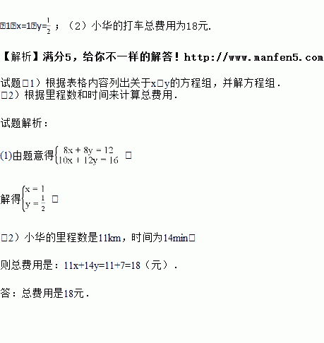 (2)如果小华也用该打车方式,打车行驶了11公里,用了14分钟,那么小华的打车总费用为多少?