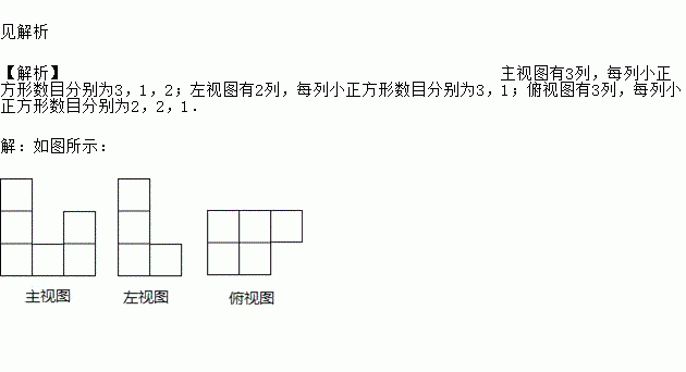 下图是由8个相同的小正方体组成的几何体,请分别画出它的主视图、左视图和俯视图.
