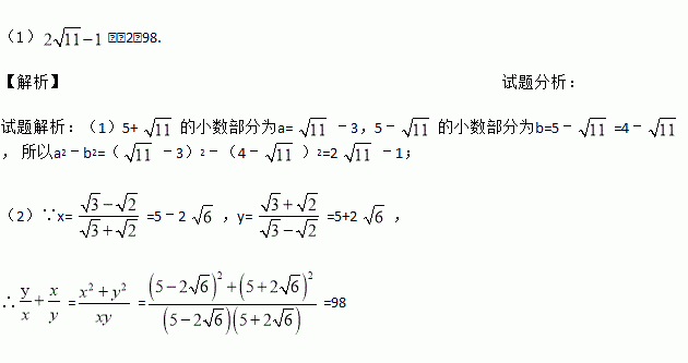 (1)若5+的小数部分为a,5﹣的小数部分为b,求a2﹣b2的值.