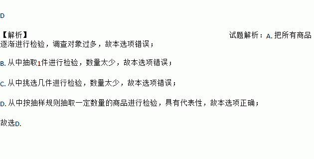A. 把所有商品逐渐进行检验 B. 从中抽取1件进行检验