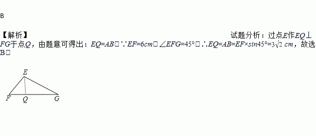 三棱柱的三视图如图所示,△EFG中,EF=6cm,∠EFG=45º,则AB的长为( )