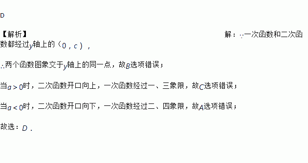 在同一直角坐标系中,一次函数y=ax+c和二次函数y=ax2+c的图象大致为( )