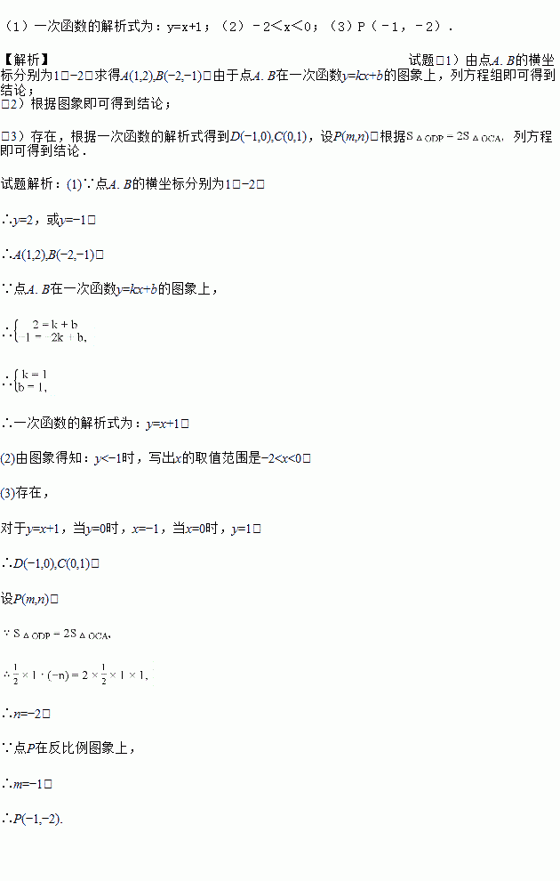 (3)在第三象限的反比例图象上是否存在一个点P,使得S△ODP=2S△OCA?若存在,请求出来P的坐标;若不存在,请说明理由.