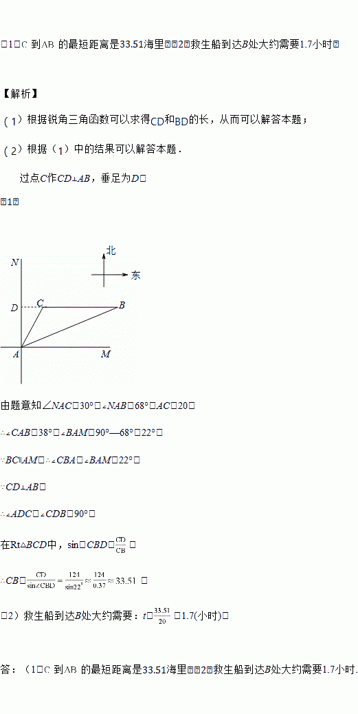 如图所示,位于处的海上救援中心获悉:在其北偏东![]()