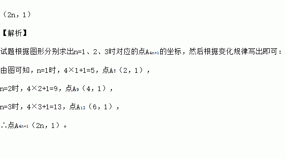 如图,在平面直角坐标系中,一动点从原点O出发,按向上,向右,向下,向右的方向不断地移动,每移动一个单位,得到点A1(0,1),A2(1,1),A3(1,0),A4(2,0),…那么点A4n+1(n为自然数)的坐标为 (用n表示)