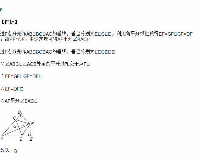 如图,△ABC的外角∠BCD,∠CBE的平分线相交于点F,连接AF,则下列结论正确的是( )