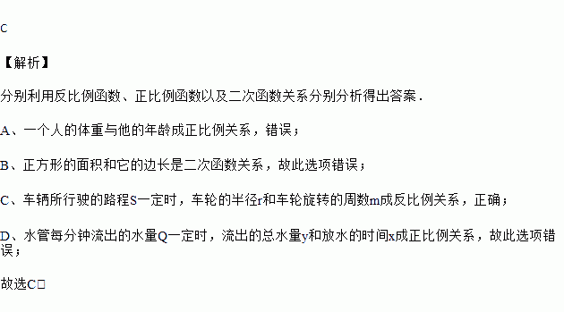 C. 车辆所行驶的路程S一定时,车轮的半径r和车轮旋转的周数m成反比例关系