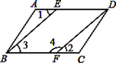 如图,已知AD∥BC,∠1=∠2,要说明∠3+∠4=180°.请完善说明过程,并在括号内填上相应依据;