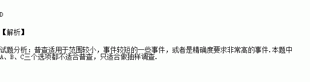 下列调查中,最适合采用全面调查(普查)方式的是 ( )