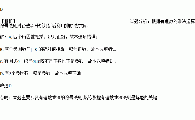 C. (-5)×2×0×(-7) D. (-5)×2×(-3)×(-7)