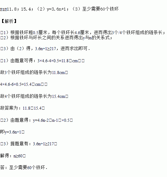 (3)若要组成2.17米长的链条,至少需要多少个铁环?