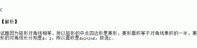已知:如图,在矩形ABCD中,E、F、G、H分别为边AB、BC、CD、DA的中点.若AB=2,AD=4,则图中阴影部分的面积为( )